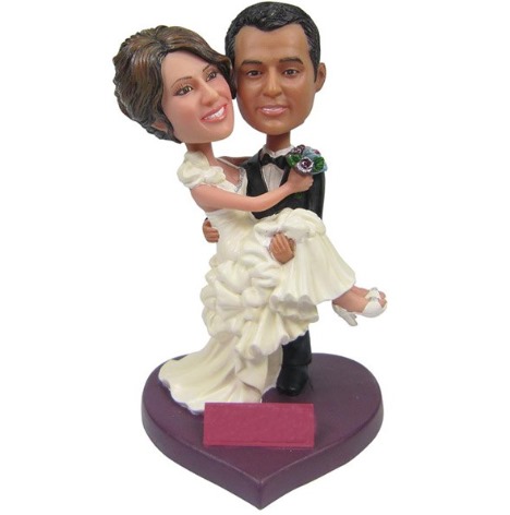 If you want to give a gift that captures the magical moment after the couple has said “I DO” at the civil ceremony, we have the perfect solution for you: Bobblehead Wedding 16 Bride Held In Arms. This figurine portrays him tenderly holding her in his arms, perfectly capturing the love and happiness of the moment.